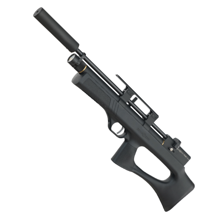 Minotaur is the bull pup version of PX 100. Designed to give the same power and accuracy in a compact package. Features a forward mounted cocking lever for ease of use, a very precise trigger, integrated suppressor and an ergonomic stock which is the highlight of every precihole gun.